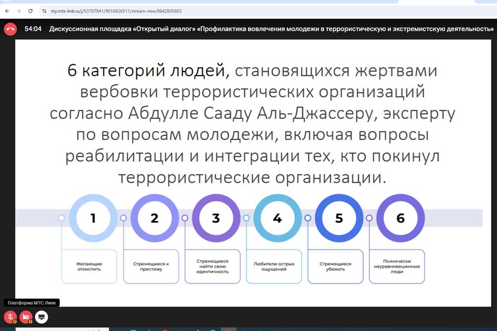 Маргарита Ивановна подчеркнула, что тема вовлечения молодёжи в террористическую и экстремистскую деятельность касается каждого из нас, поскольку именно молодёжь часто становится объектом манипуляций и воздействия радикальной идеологии.