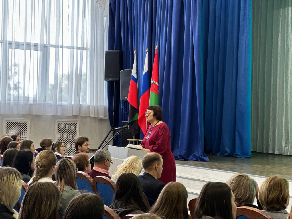 Ирина Ивановна рассказала о направлениях подготовки, кафедрах и пожелала первокурсникам успехов в учебной и научной деятельности. Начальник многофункционального центра Склярова Е.А. представила студентам систему ИНФО «БелГУ», ознакомила с расписанием учебных занятий, а также рассказала о возможностях участия в круглых столах, спортивных и научных мероприятиях университета.