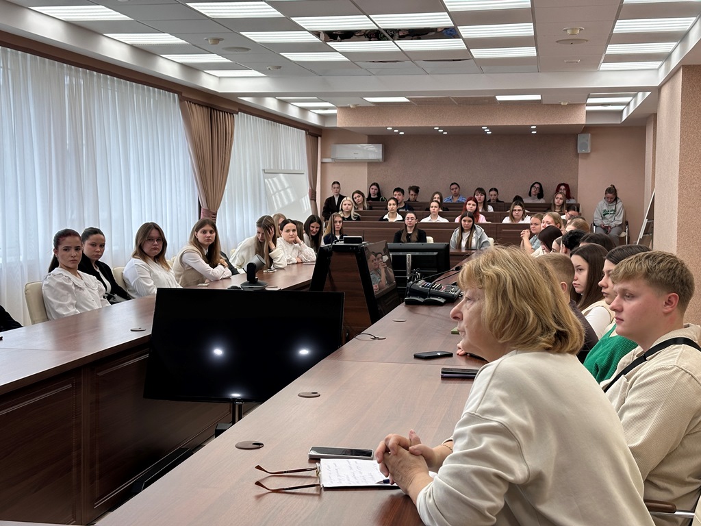 Елена Вячеславовна подробно познакомила студентов с содержанием социального контракта. Студентов заинтересовали вопросы направлений социальных контрактов, кто может заключить социальный контракт и что такое программа социальной адаптации.