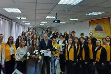 Студенты шести групп вуза познакомились с действительно необычной историей о том, как человек, занимавшийся техническими науками, ученый, обнаружил в себе талант и любовь к творчеству и посвятил ему большую часть жизни. Его "Нетрудовая автобиография. О себе (шутя): Ефимовский (Берлин) Ефим Семёнович все-таки родился 13 декабря 1946 года в городе Ленинграде. В 1961-65 гг. кое-как учился в техникуме Авиаприборостроения. В 1966-68 гг. лениво служил в рядах Советской Армии. В 1968-1977гг. отдыхал техником, потом инженером в научной лаборатории одного из Конструкторских Бюро. Как-то «НЕЧАЯННО» защитил диссертацию, и даже стал доцентом. В1974 г. поступил сам и еле-еле закончил заочное отделение института Киноинженеров. С 1977 по 1982 гг. в шутку назывался руководителем Клуба Сатиры и Юмора при ДК „Пищевиков“. С1974 по1990 г.г. подрабатывал поэтом в сатирическом объединении Ленинградских художников и поэтов „Боевой карандаш“. В 198 -1991 гг. в качестве автора-исполнителя валял дурака на сцене ленинградского театра „Эксперимент“. В спектакле „Урок смеха“ обзывался в афишах „первым учеником“ — двоечником и выскочкой… К 2009 году успел настучать НА МАШИНКЕ (и клавиатуре компьютера) более тридцати книг для детей и взрослых. Учебники в стихах... и.д.». Ефим Ефимовский так увлёкся увлекательными историями о науках в стихах, что ушел из научной лаборатории…и стал просто поэтом, режиссером, драматургом.