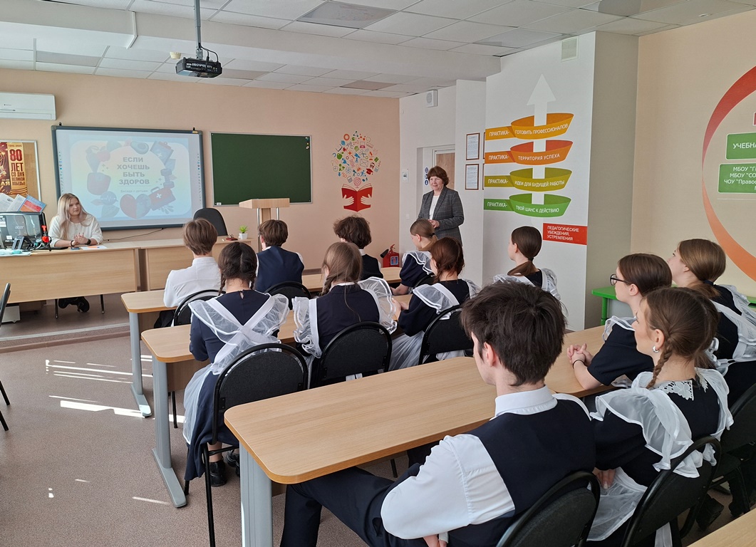 На первом этапе работы кандидат пед. наук, доцент Т.И. Степанова и студент педагогического направления Ирина Гнедова провели для наших гостей викторину «Если хочешь быть здоров!». В нескольких раундах ученики выбирали правильные ответы по темам здорового образа жизни, физической культуры, питания и психического здоровья.