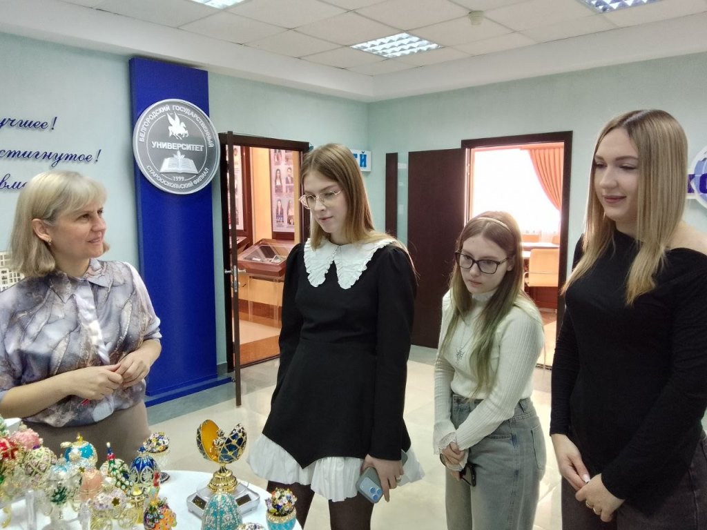 После беседы все были приглашены на выставку «Пасха - Светлый праздник». Музей истории приглашает студентов, преподавателей и сотрудников филиала на выставку, посвященную Светлому празднику – Пасхе.